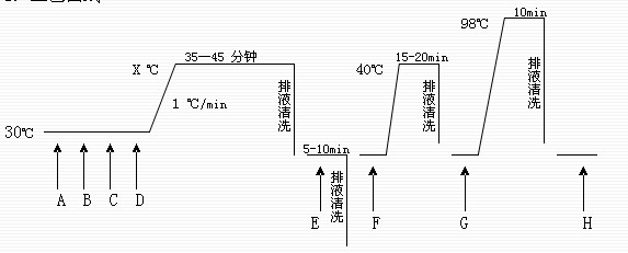 加入預(yù)先稀釋的皂洗劑,升溫至98±2℃,運(yùn)轉(zhuǎn)10min,排液,水洗;